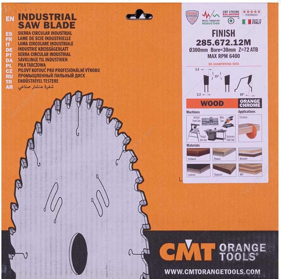 تیغ اره چوب بر CMT ایتالیا 30سانت 72 دندانه 285.672.12m