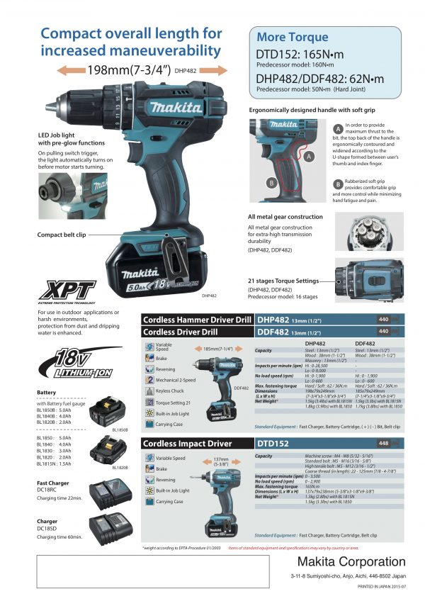 دریل شارژی 18 ولت ماکیتا مدل DDF 482 RME